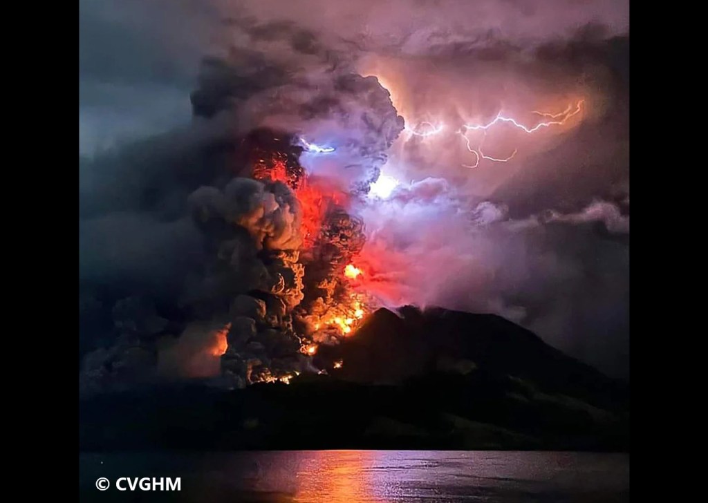 En effet, dans la nuit du 17 au 18 avril, un imposant panache de cendres s’est formé et a atteint 16 km d’altitude, avec une multitude d’éclairs et de nombreuses nuées ardentes, certaines atteignant la mer ! L’alerte a alors été élevée à 4, associée à une interdiction dans un rayon de 6 km et obligeant ainsi environ 11 000 personnes sur l’île voisine à évacuer également.
