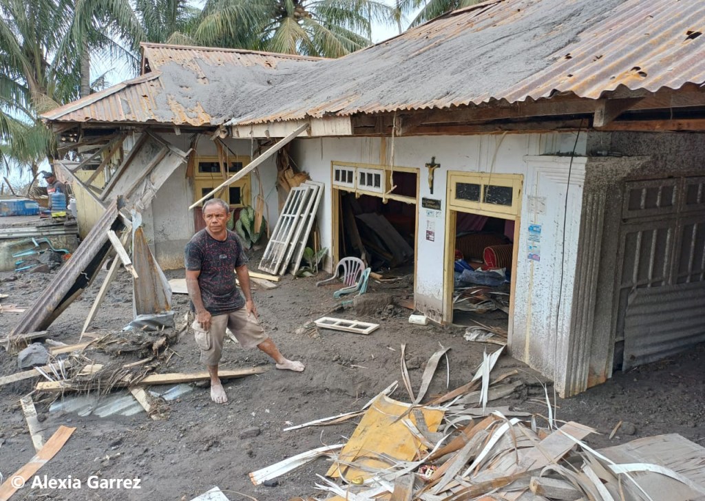 L’éruption se calma le lendemain, laissant découvrir une île totalement grise de cendres… Des habitants purent ainsi revenir temporairement dans le village, découvrant pas mal de dégâts dus aux retombées de cendres !