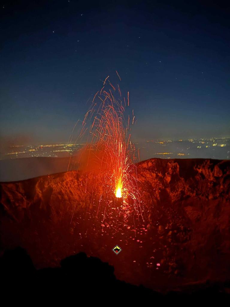 Une petite activité éruptive a débuté le 14 juin, sur le bord sud du cratère central de l’Etna aussi appelé la Voragine ! C’est une activité modeste, avec une activité d’éclaboussures projetant des lambeaux de lave à moins de 30 mètres de haut… On peut donc s’en approcher, ce que font quelques groupes chaque soir !