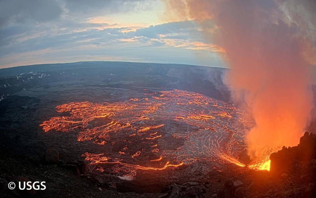 Une autre éruption où il peut être question de prédiction volcanique a débuté au Kilauea, à Hawaï, le 23 décembre. Une fissure éruptive s’est ouverte sur le plancher de la caldeira sommitale, mais l’activité s’est rapidement stabilisée sur deux évents situés dans la bordure sud-ouest de celle-ci. L’activité y est curieusement intermittente, avec des pauses de 1 à 12 jours qui alternent avec des épisodes éruptifs de quelques heures jusqu’à 8 jours ! Durant ces derniers, des fontaines de lave 30 à 50 mètres animent généralement les deux évents, avec des phases plus intenses parfois, comme le 25 février lorsqu’une fontaine de lave a atteint près de 200 mètres de haut ! Les coulées associées s’étalent dans le cratère et participe ainsi à la hausse progressive du plancher depuis son effondrement en 2018. Lors des périodes sans activité, une lueur persiste au niveau des évents, ainsi qu’un faible trémor et un flux de gaz supérieur au niveau de fond. Cela atteste que le magma n’est pas loin, mais que la pression interne n’est pas suffisante pour maintenir l’éruption en surface… Néanmoins, les GPS situés sur les bords de la caldeira révèlent un lent gonflement du sol pendant ces pauses et donc une mise en pression progressive. Mieux, les scientifiques locaux ont estimé qu’il faut une variation d’angle de 2à 10 microradians pour que l’activité revienne, ce qui prend entre un et quinze jours… Un fonctionnement vraiment passionnant, en plus d’un spectacle magique !