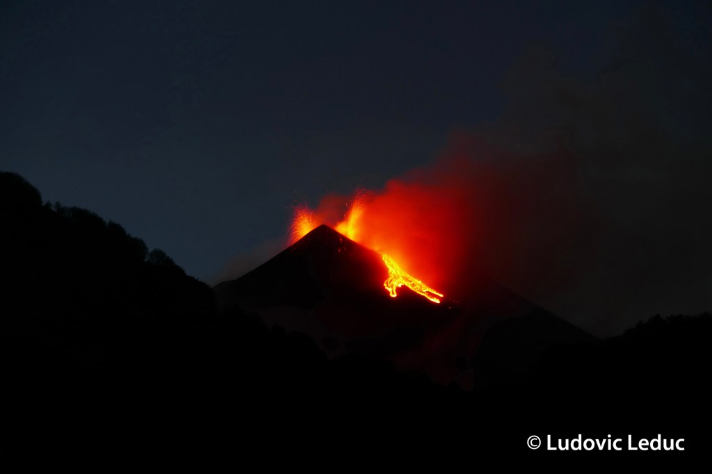 La mode est sans doute aux éruptions discontinues en ce moment car de l’autre côté de la planète, une séquence similaire a débuté sur le Cratère Sud-Est de l’Etna, en Sicile. En effet, tous les quatre ou cinq jours en moyenne, des phases d’activité strombolienne plutôt modestes animent ce cône éruptif pendant quelques heures. Pour l’instant, treize épisodes se sont produits, la plupart alimentant aussi des coulées de lave de quelques centaines de mètres de long dans les échancrures sud et est qui découpent ce cône volcanique.