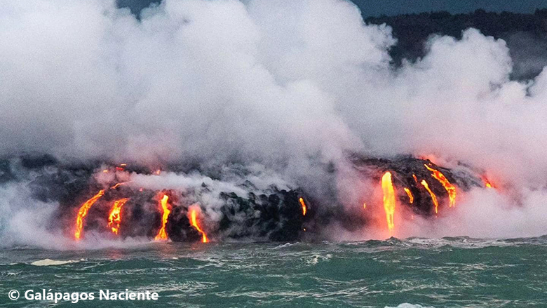 FERNANDINA (Galapagos) : Deux mois d’éruption et des coulées dans l’océan !