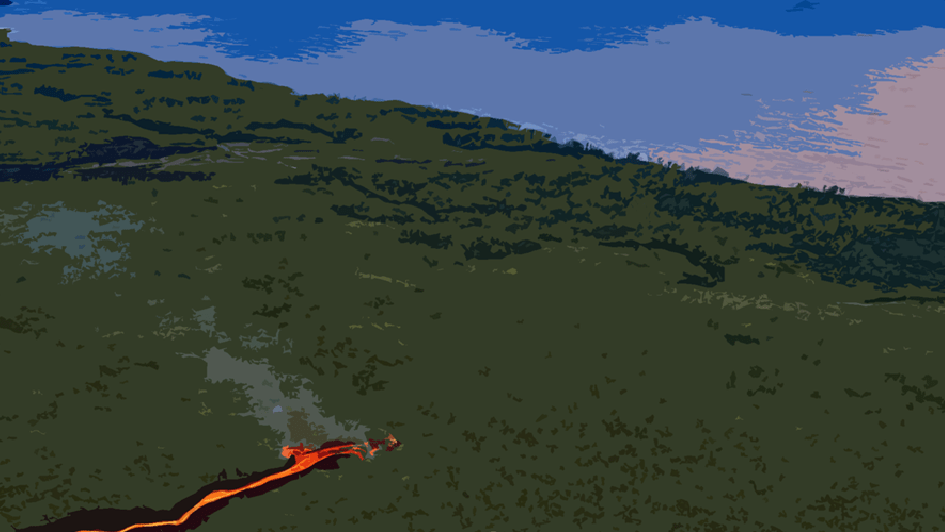 Il est cependant très probable que d’autres bras de coulée recouvrent la route dans la journée ou le weekend ! Car à l’image de ces derniers jours, la progression du front n’est pas linéaire, puisqu’il avance par l’intermédiaire de diverses coulées éphémères alimentées par le tunnel progressant vers l’aval. Si le débit demeure aussi stable qu’en ce moment, on peut quand même imaginer que la lave arrive dans l’océan dans quelques jours…