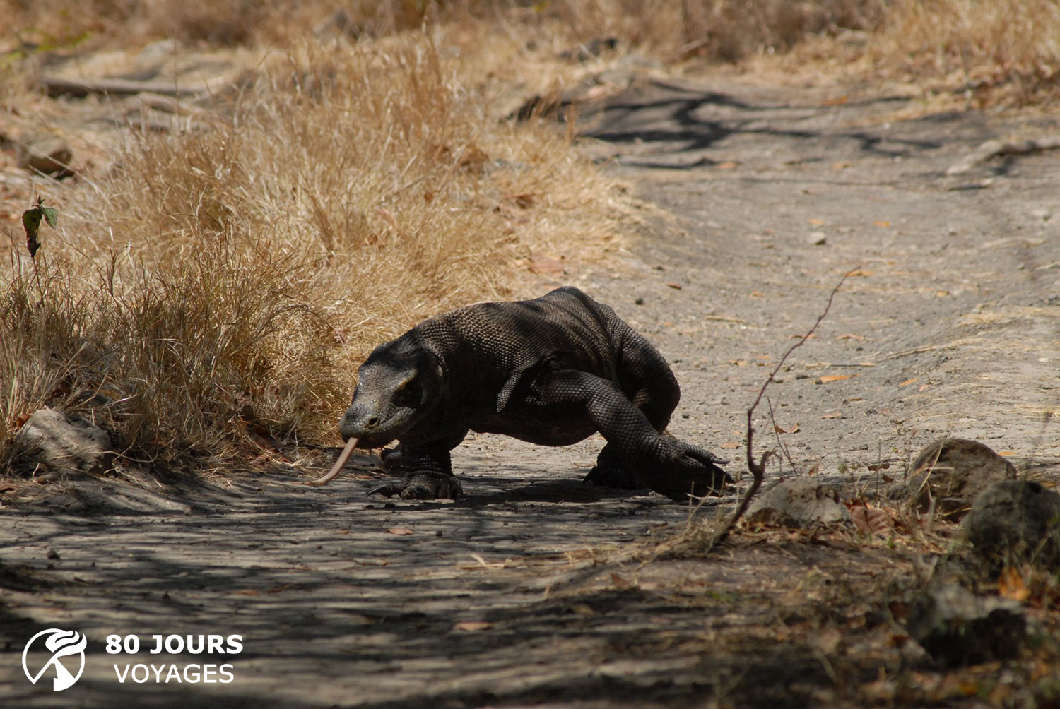 Navigation vers la baie de Loh Liang où un ranger du parc nous attend pour une randonnée d’environ 1h à la rencontre des célèbres varans, les « Dragons de Komodo » qui peuvent atteindre 3,50m!